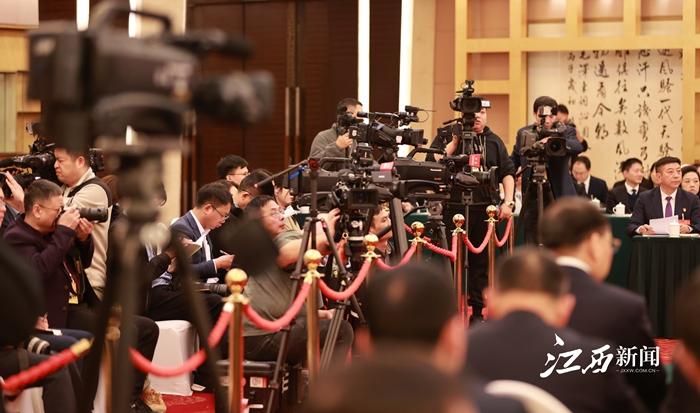 面对摄影、摄像记者架起的镜头长阵,代表们以高度的责任感认真审议、共商国是。从打造国家生态文明建设高地到神山村新变化、从建设铜基新材料先进制造业集群到激发科研人员创新动力活力、从加强湘赣边区域合作到推进乡村全面振兴……10位代表们的发言主题鲜明、建议务实。进入提问环节,记者们争相举手提问,代表们从容自信、坦诚回答,现场快门声不断、闪光灯不停。在回答记者提问时,一个开放自信的江西、一个蓬勃发展的江西,立体生动呈现在大家面前,深深吸引着记者们的目光。