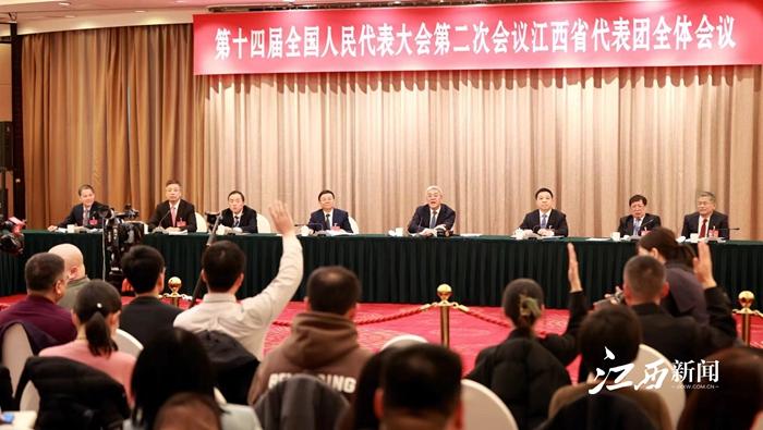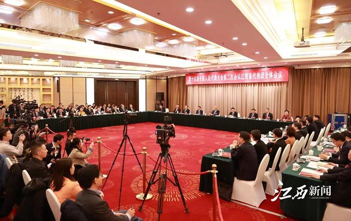 江西新闻客户端北京讯(江西日报全媒体记者魏星、张武明)3月6日下午,十四届全国人大二次会议江西代表团举行全体会议,审查计划报告和草案、预算报告和草案,并向境内外记者开放团组。