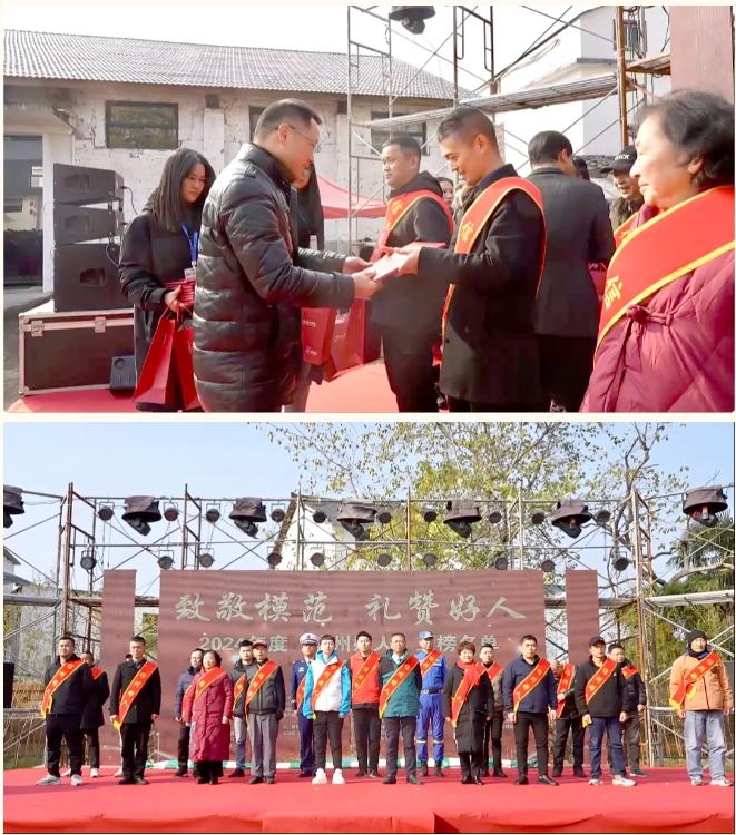 12月14日上午,由中共信州区委宣传部、信州区民政局、沙溪镇人民政府主办的2024年度“信州好人”颁奖典礼在沙溪老街举行。副区长龚桃出席颁奖典礼并为“信州好人”颁奖。