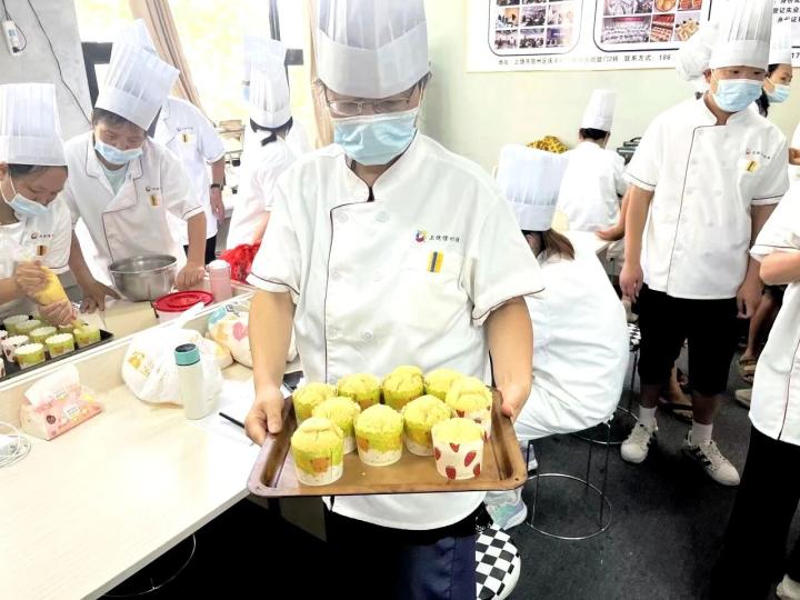 培训现场暖意融融,黄油的醇厚香气与小麦粉的气息在空气中交织,刚预热好的烤箱不时发出轻微的“嗡”声。学员们统一身着洁白挺括的厨师服,头戴蓬松的白色厨师帽,胸前的围裙上沾着零星面粉,却丝毫不影响他们投入西点制作实操环节的热情。
