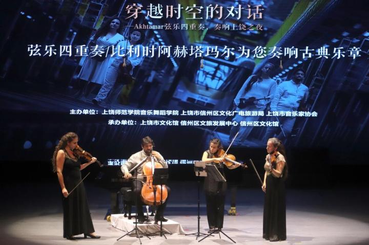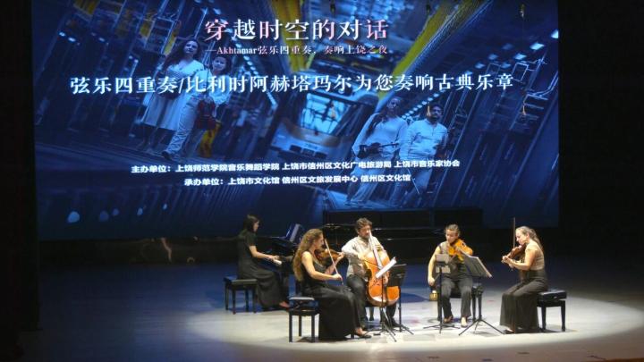 9月15日晚,上饶师范学院音乐厅内乐声悠扬,比利时阿赫塔玛尔弦乐四重奏携多元曲目登台,为现场师生及音乐爱好者带来一场国际级古典音乐盛宴。据悉,本次活动由上饶师院音乐舞蹈学院、上饶市信州区文化广电旅游局、上饶市音乐家协会主办,上饶市文化馆、信州区文旅发展中心、信州区文化馆承办。