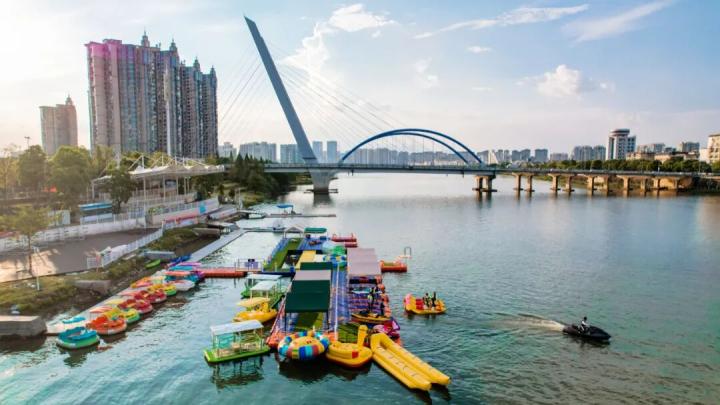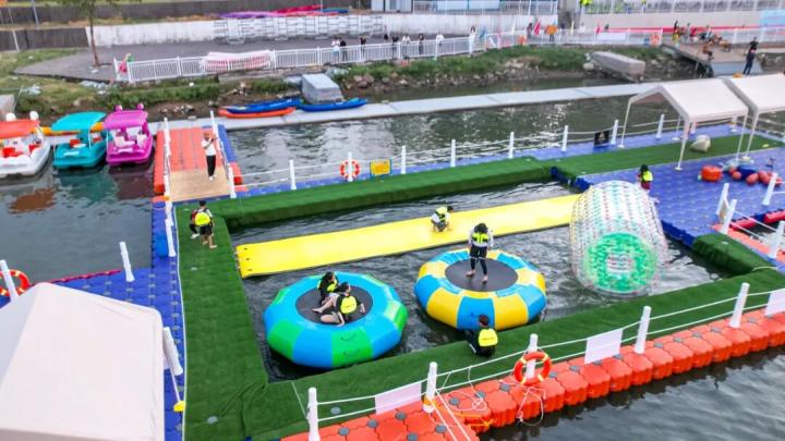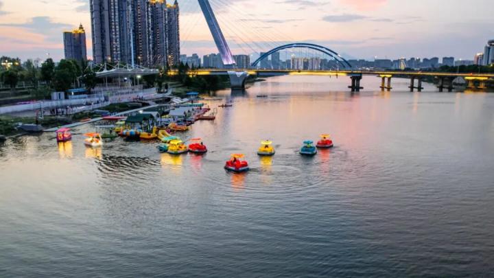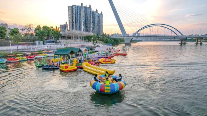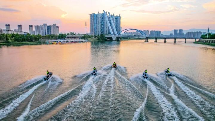 “我们像在江上画了一个大大的圈!太酷啦!”引擎低沉地咆哮,摩托艇像一支离弦的箭,劈开了这一湾碧蓝。八岁的可可在爸爸的带领下来到上饶欢乐水世界,在江面上,她能闻到水汽的清新、阳光里的青草味,混合成一种独属于夏天的、刺激又好闻的“冒险味道”。“带孩子来感受一下赛艇运动的‘速度与激情’。”市民张先生说,这两年水越来越清澈了,是夏天带娃玩水的好去处。