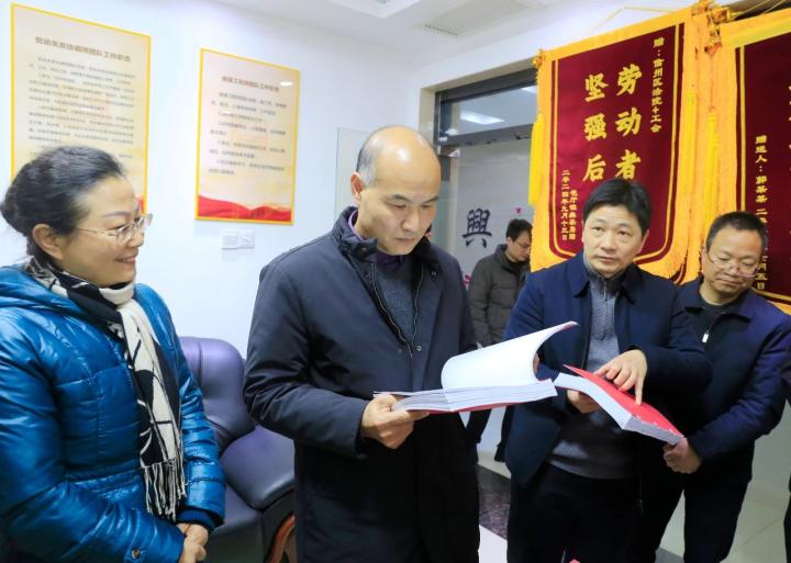 在区人民法院“法院+工会”劳动争议诉调对接工作室,任春山与调解员代表亲切交流,现场查看了相关台账资料,听取了“法院+工会”劳动争议诉调对接工作情况介绍,并对信州区“法院+工会”在诉源治理、多元解纷工作上取得的成效给予了充分肯定,对来年劳动争议诉调对接工作提出了新的要求。