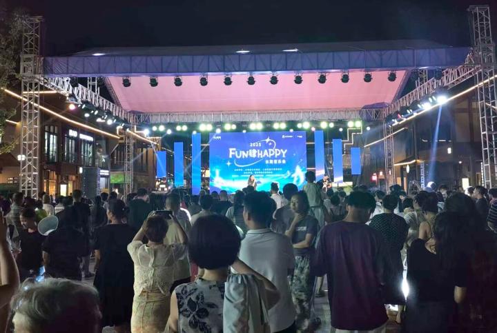 以假日经济为抓手,信州区围绕春节、五一、国庆中秋等重要节庆节点,系统策划并推出一系列主题消费活动,精准覆盖全年龄段消费需求,累计吸引客流超百万人次。五一期间,信州区以“五一车展”、厨电家具焕新补贴、美食节等特色活动为抓手,联动各大商圈打造消费热点,期间带动消费金额超4800万元。国庆期间,消费活动进一步“提质扩圈”,水南街文化街区以“宝藏上饶市集”、无人机烟花秀、“8090歌友会”等活动,成功吸引客流超36万人次,树立了文旅融合消费新标杆。万达广场则通过“膨胀面包节”、爱心烟花瀑布、萌宠运动会及消费券促销等多元内容,吸引家庭客流消费,期间客流量超57万人次,实现销售额超2700万元。