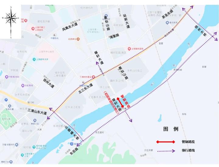 1、请广大市民提前规划出行路线,尽量避开管制路段,可选择吴楚大桥、云碧峰大桥、东岳大桥、信江大桥等路段绕行。