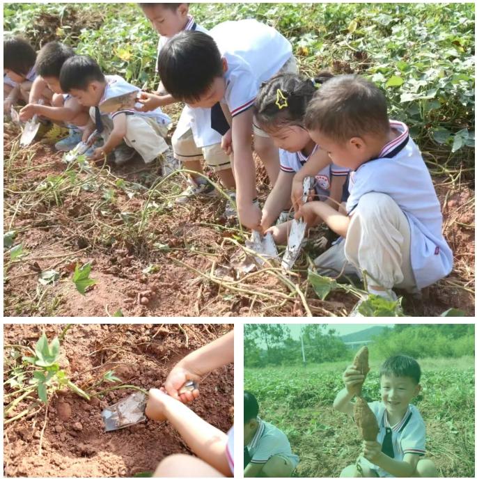 田野间,孩子们手握小铲,轻轻拨开泥土。每当形状各异的红薯从土中显露出来,惊喜的欢呼声便此起彼伏。“快看,我挖到一个大的!”一个小男孩高高举起自己收获的“战利品”,脸上写满兴奋。另一边的菜地里,孩子们则小心翼翼地将菜苗栽入土中,亲手体验播种的希望。