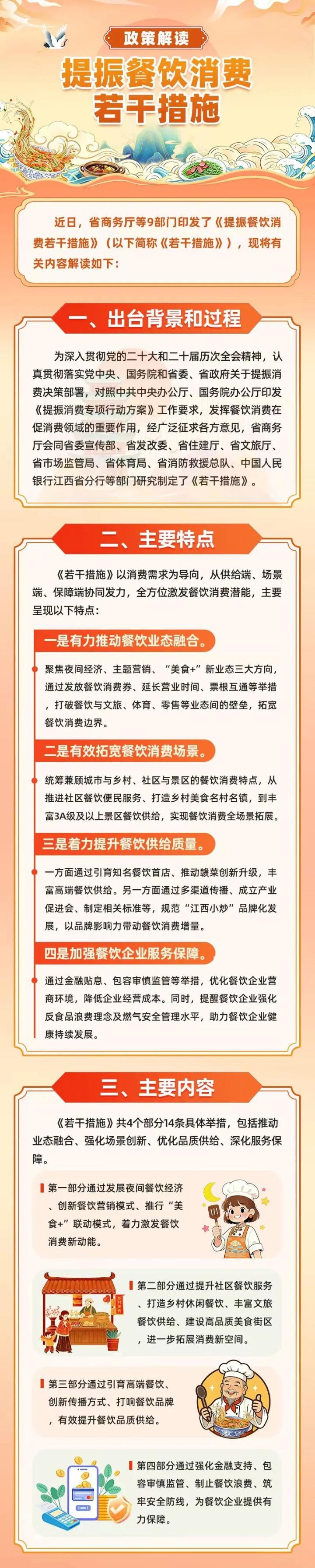 在推动业态融合方面,《若干措施》提出,大力发展夜间餐饮经济,支持延长餐饮经营时间,营造“越夜越美味”的消费氛围,并鼓励各地联合平台企业发放消费券;创新餐饮主题营销,持续打造江西小炒美食市集,鼓励结合各类文旅体活动开展美食消费季等促消费活动;推行“美食+”联动模式,通过“凭票享美食”、餐饮消费抵扣景区门票等举措,实现文旅、体育与餐饮消费深度融合。